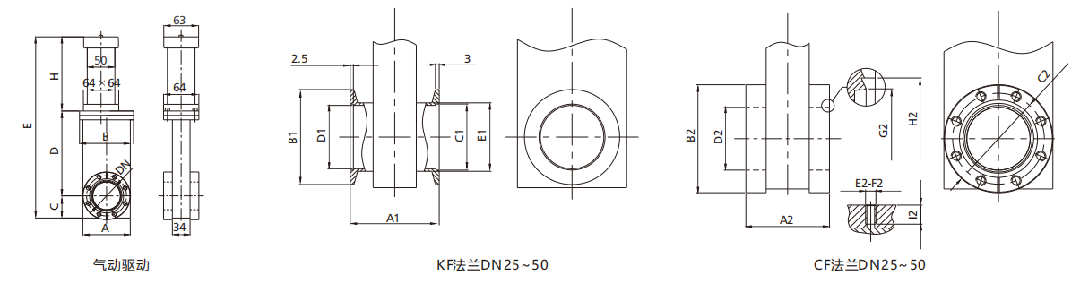 K/F/NW/CF SS304 SS316L ကိုယ်တိုင်အသုံးပြုသော နှင့် လေဖြင့်လည်ပတ်သည့် နှစ်ဘက်လုပ်ဆောင်သော စတိန်းလက်စ်သံမဏဲဖလန်းဗားလ်၊ အလွန်ကွန်းခွာသော UHV ဂိတ်ဗားလ်များ