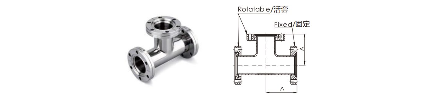 3-လမ်းညီမျှသော တီ၊ လှည့်ပတ်နိုင်သော စတိန်းလက်စ်သံမဏဲ CF16-CF100 မြင့်မားသော စက္ကူဗလာ SS304 SS316L လှည့်ပတ်နိုင်သော/မလှည့်ပတ်နိုင်သော ညီမျှသော တီ ဖလေ့န်းစ် ပိုက်ဆို့မှုများ (ဆီမီဗွန်ဒက်တာအတွက်)