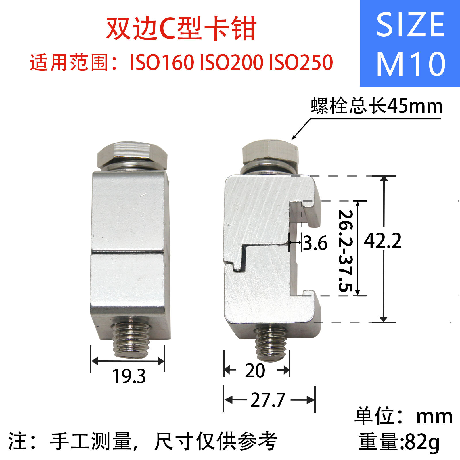 | FCF82M108 | M10 | ISO160-ISO250 | 42.5 | M10 | 27.8 | 20.2 | 75 | 250 |